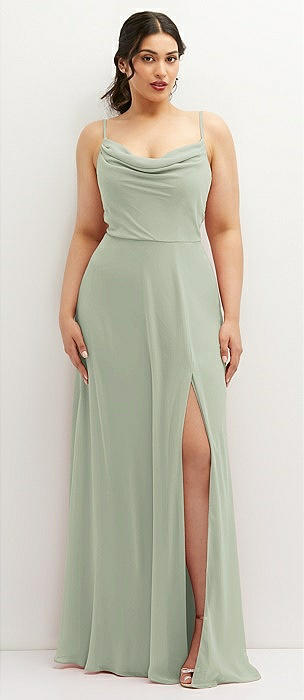 Soft Cowl-Neck A-Line Maxi Dress with Adjustable Straps in celadon