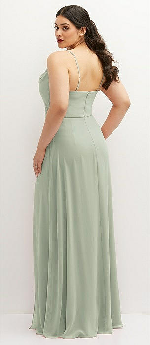 Cowl Neck Chiffon Maxi Dress with Hand-Worked Petal Straps in celadon