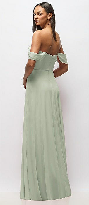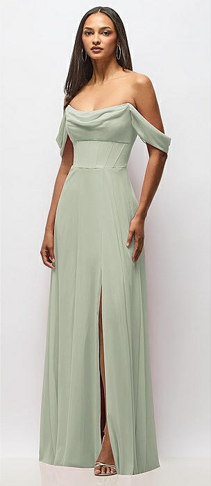 Chiffon Corset Maxi Dress with Removable Off-the-Shoulder Swags in celadon