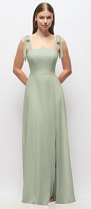 Tie-Shoulder Chiffon Maxi Dress with Front Slit in celadon