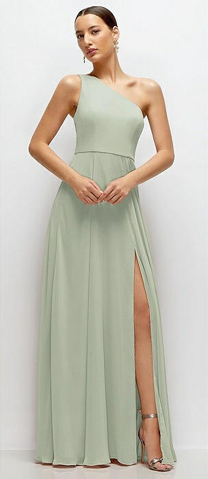 Chiffon One-Shoulder Maxi Dress with Circle Skirt in celadon