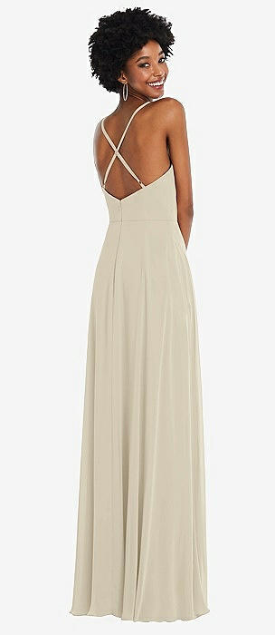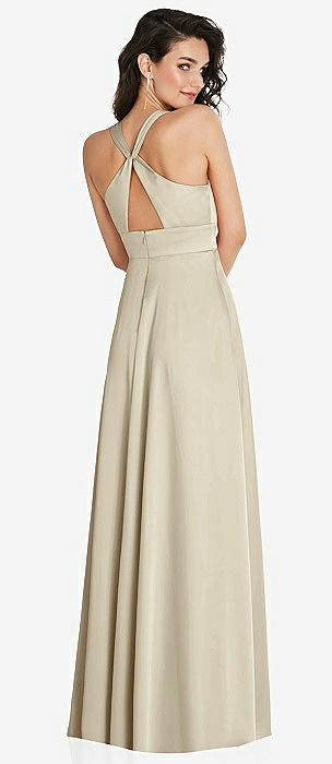 Stand Collar Halter Maxi Dress with Criss Cross Open-Back in champagne