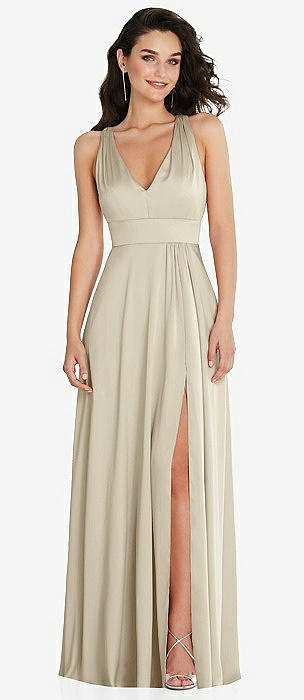 V-Neck Full Skirt Satin Maxi Dress in champagne