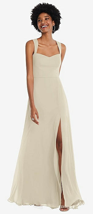 Contoured Wide Strap Sweetheart Maxi Dress in champagne