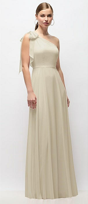 Draped One-Shoulder Maxi Dress with Scarf Bow in champagne