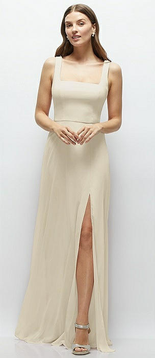 Square Neck Chiffon Maxi Dress with Circle Skirt in champagne