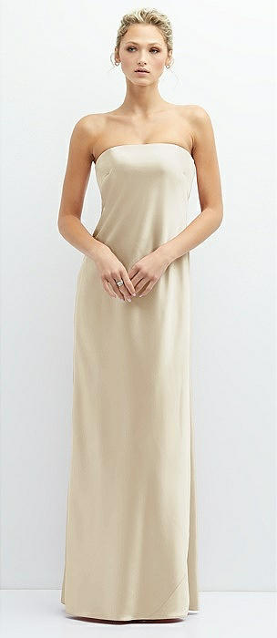 Strapless Maxi Bias Column Dress with Peek-a-Boo Corset Back in champagne