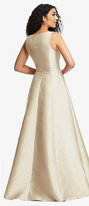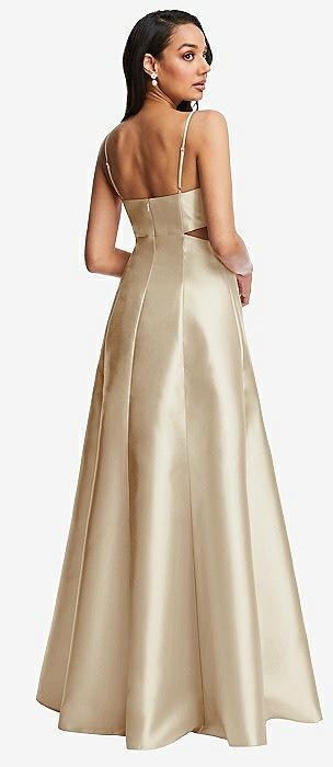 Open Neckline Cutout Satin Twill A-Line Gown with Pockets in champagne