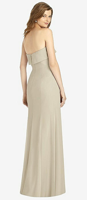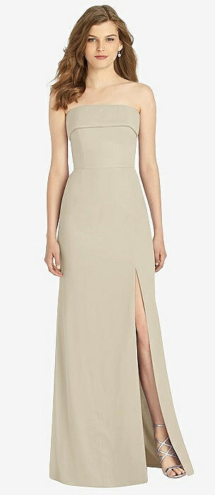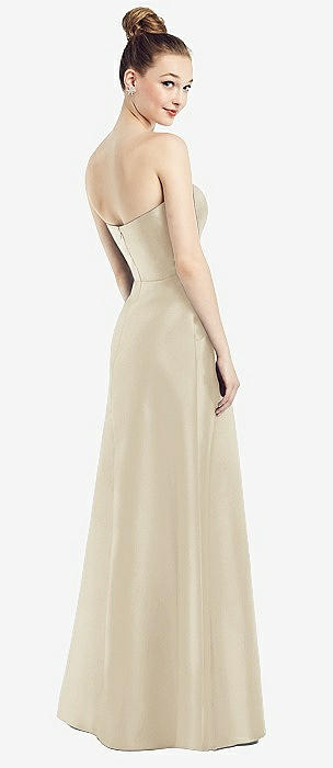 Strapless Satin Gown with Draped Front Slit and Pockets in champagne