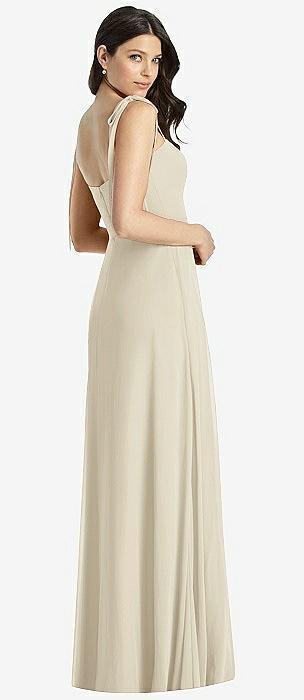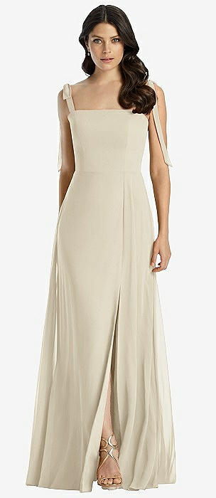 Tie-Shoulder Chiffon Maxi Dress with Front Slit in champagne