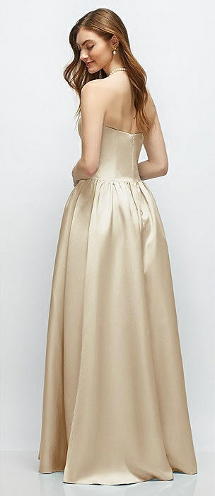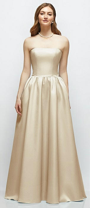 Strapless Satin Drop Waist Gown with Full Skirt in champagne