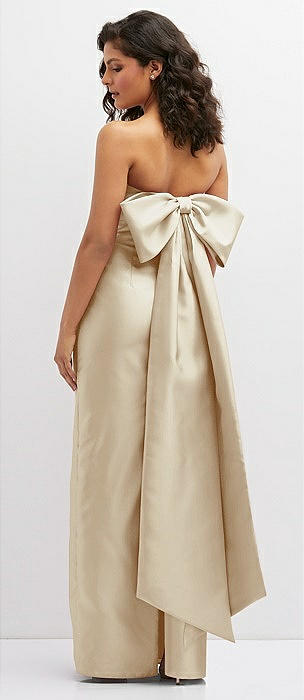 Strapless Draped Bodice Column Dress with Oversized Bow in champagne