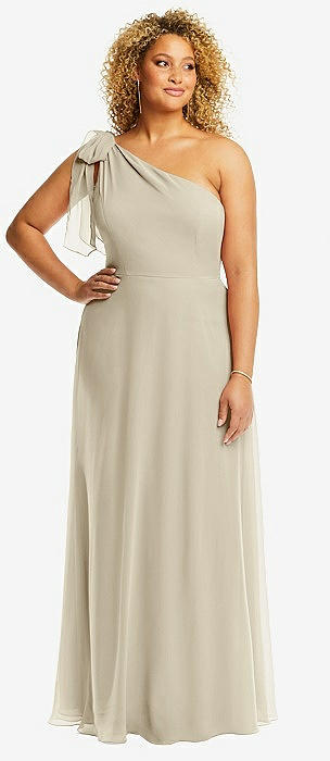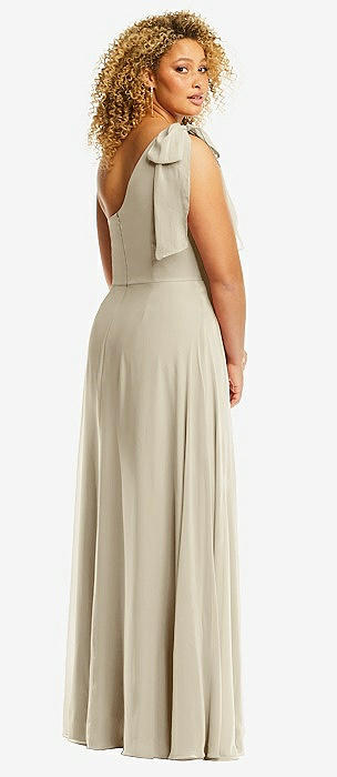 Bow One-Shoulder Full A-Line Satin Maxi Dress in champagne