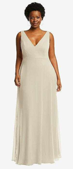 Deep V-Neck Chiffon Maxi Dress in champagne