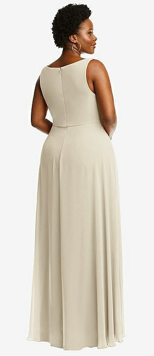 Sleeveless V-Neck Chiffon Wrap Dress in champagne
