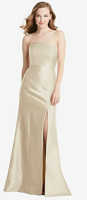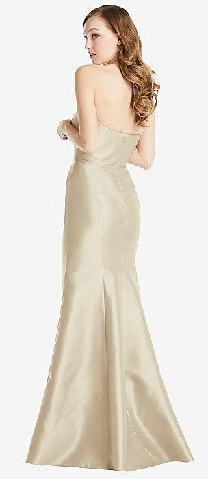 Off-the-Shoulder Bow-Back Satin Trumpet Gown in champagne