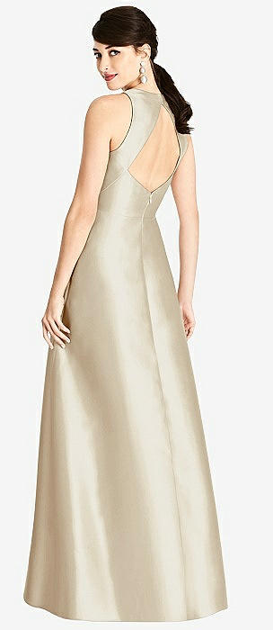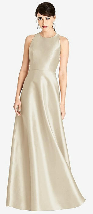 Sleeveless A-Line Satin Dress with Pockets in champagne
