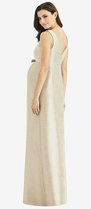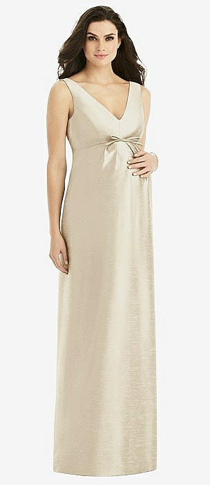 V-Neck Full Skirt Satin Maxi Dress in champagne