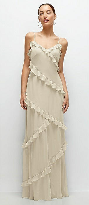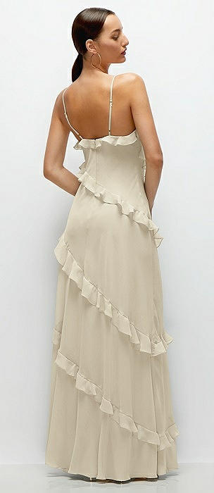 Asymmetrical Ruffle Chiffon Bias Slip Maxi Dress