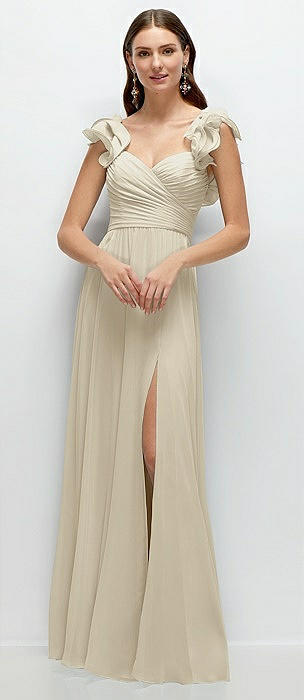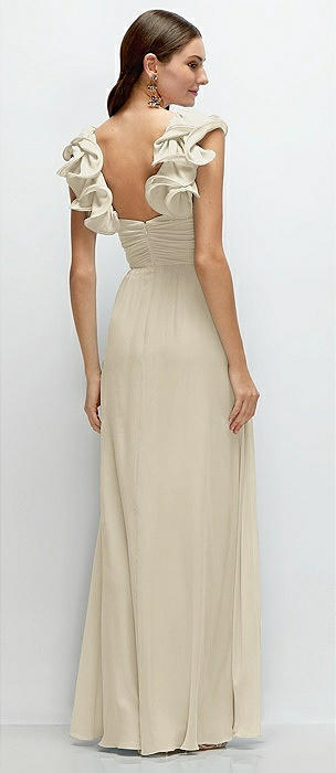 Dramatic Ruffle Edge Strap Chiffon Maxi Dress in champagne