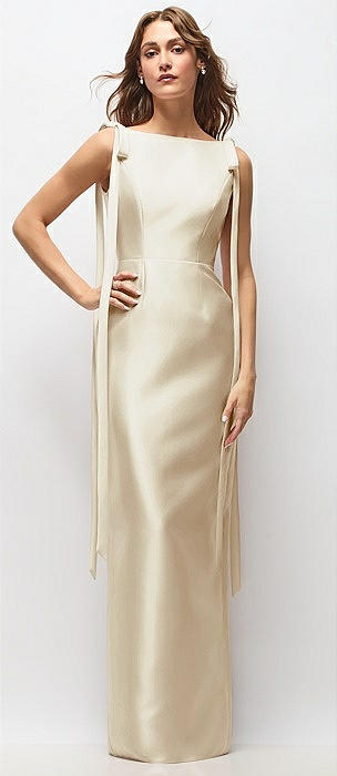 Bateau Neck Satin Column Maxi Dress with Exaggerated Tail Bow Straps in champagne