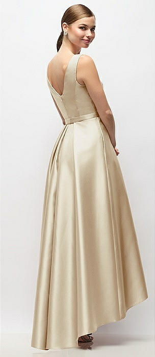 Sleeveless Pleated Skirt High Low Dress with Pockets in champagne