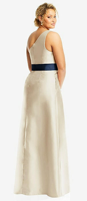 Draped One-Shoulder Satin Maxi Dress with Pockets in champagne
