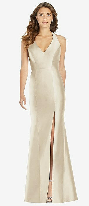 Alfred Sung Champagne V-Neck Bridesmaid Dresses