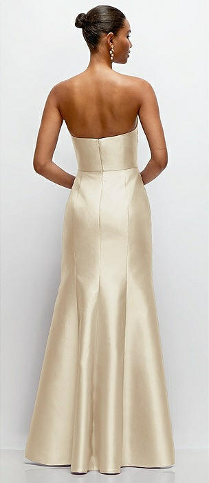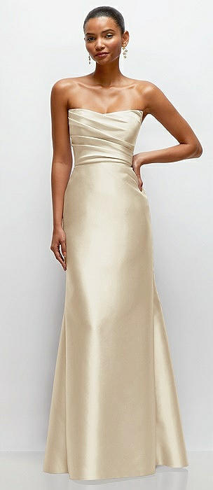 Strapless Cat-Eye Draped Bodice Satin Tumpet Dress in champagne