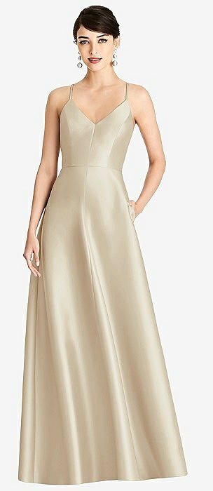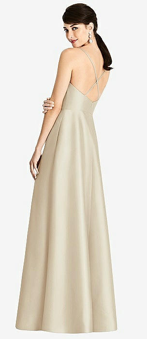 Open Neckline Cutout Satin Twill A-Line Gown with Pockets in champagne