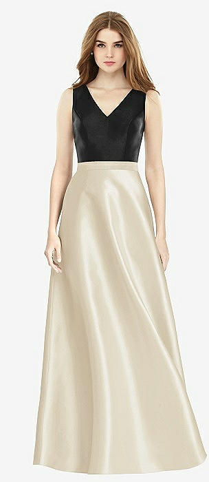 Sleeveless A-Line Satin Dress with Pockets in champagne