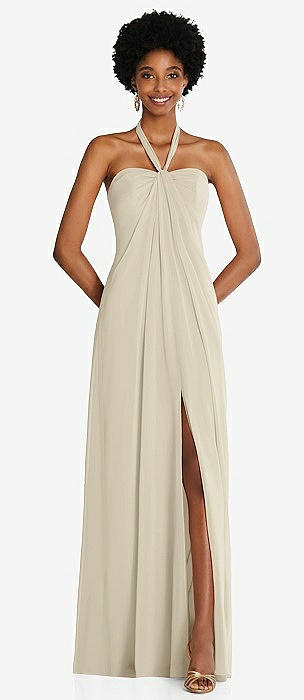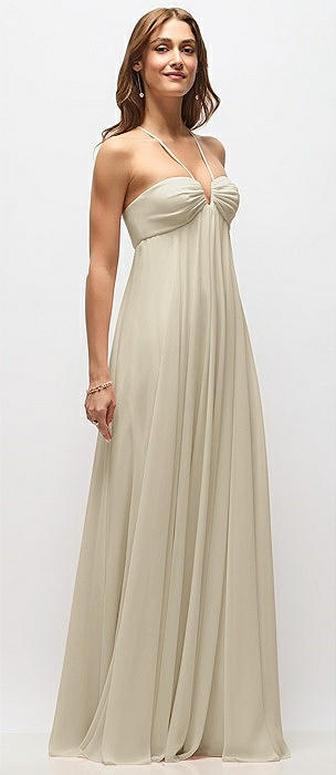 Empire Waist Chiffon Halter Maxi Dress with Convertible Spaghetti Straps