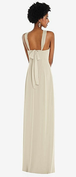 Dessy Champagne Bow & Tie Bridesmaid Dresses