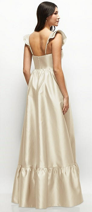 Satin Corset Maxi Dress with Ruffle Straps & Skirt in champagne