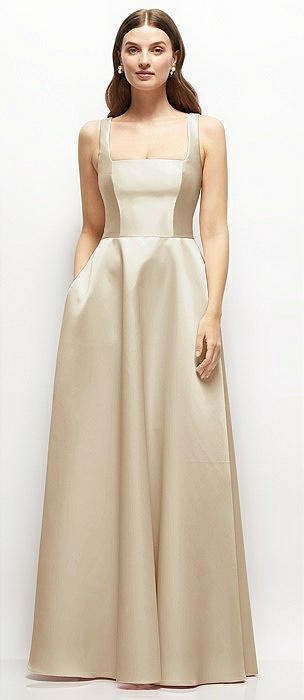 Square-Neck Satin Maxi Dress with Full Skirt in champagne