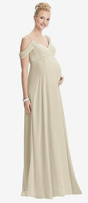 Draped Cold-Shoulder Chiffon Maternity Dress in champagne
