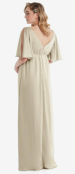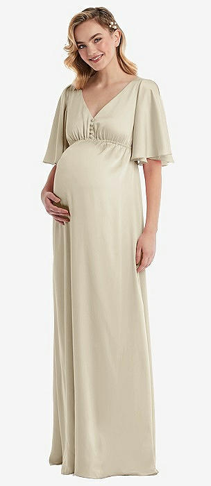 Flutter Bell Sleeve Empire Maternity Dress in champagne