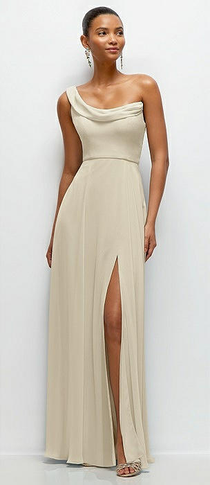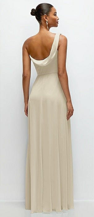 Chiffon One-Shoulder Maxi Dress with Draped Cowl Neckline in champagne
