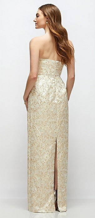 Strapless Champagne Brocade Column Dress with Back Slit in champagne filigree