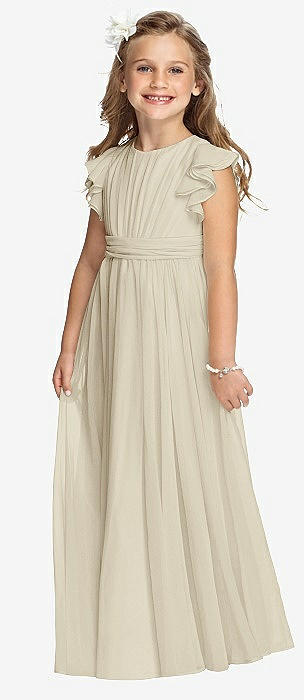 Faux Wrap Pleated Skirt Satin Twill Flower Girl Dress with Bow in champagne