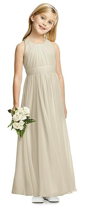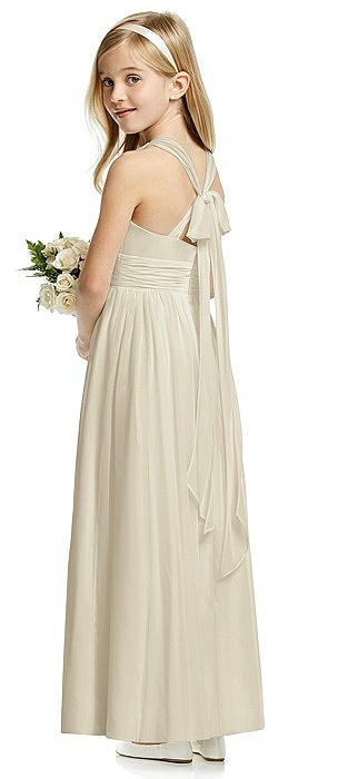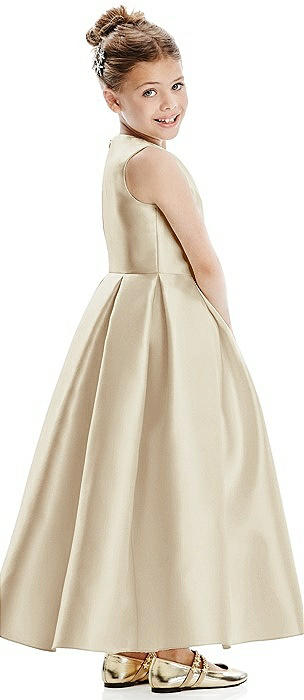 Princess Line Satin Twill Flower Girl Dress with Bows in champagne