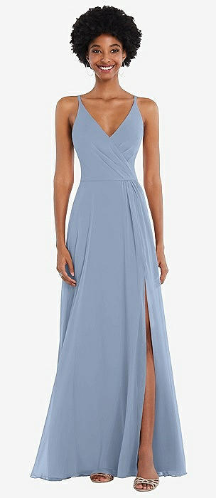 Empire Waist Chiffon Halter Maxi Dress with Convertible Spaghetti Straps in cloudy