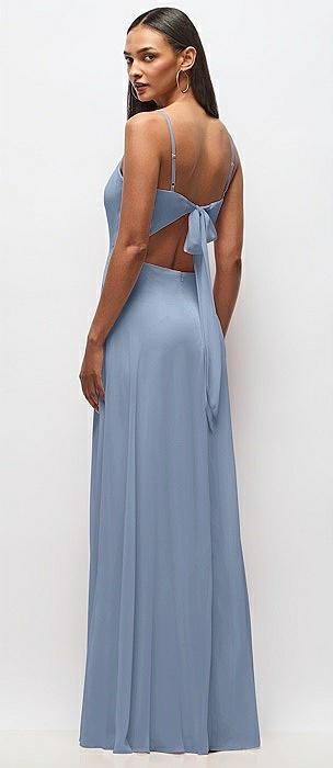 Plunge Halter Open-Back Maxi Bias Dress with Low Tie Back in cloudy