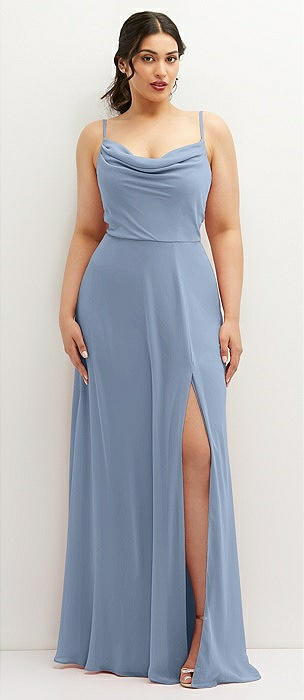 Soft Cowl-Neck A-Line Maxi Dress with Adjustable Straps in cloudy