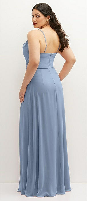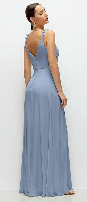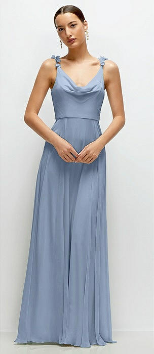 Cowl Neck Chiffon Maxi Dress with Hand-Worked Petal Straps in cloudy