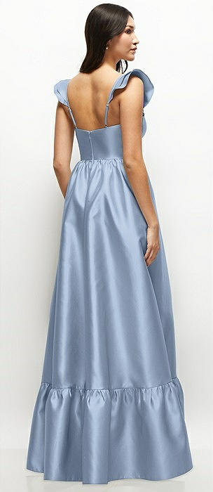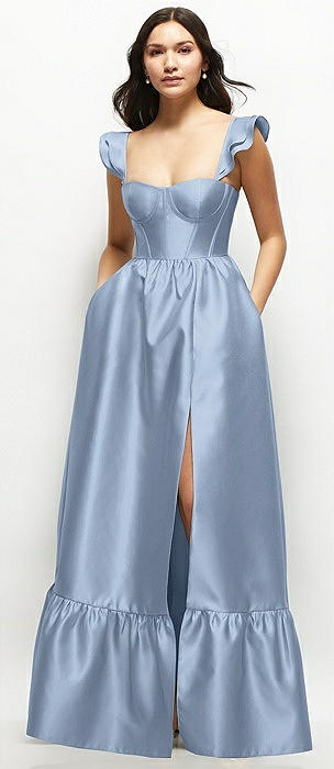 Satin Corset Maxi Dress with Ruffle Straps & Skirt in cloudy