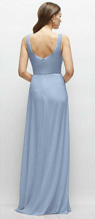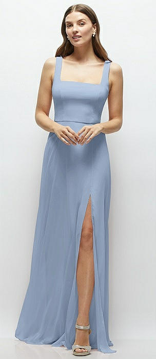 Square Neck Chiffon Maxi Dress with Circle Skirt in cloudy
