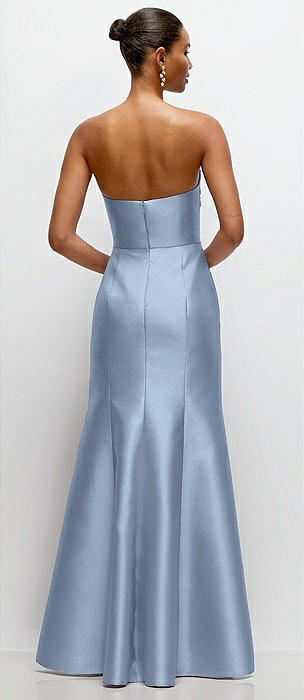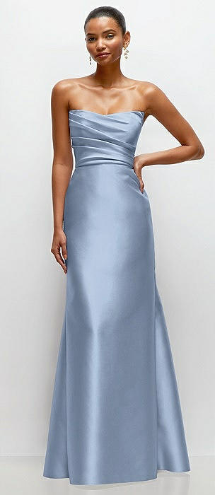 Strapless Cat-Eye Draped Bodice Satin Tumpet Dress in cloudy