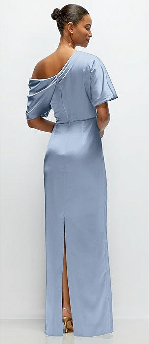 One-Shoulder Cat-Eye Neckline Fit and Flare Satin Maxi Dress in cloudy