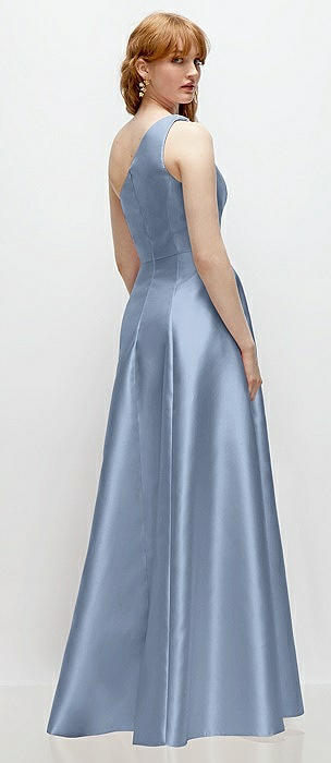 One-Shoulder Cat-Eye Neckline Fit and Flare Satin Maxi Dress in cloudy